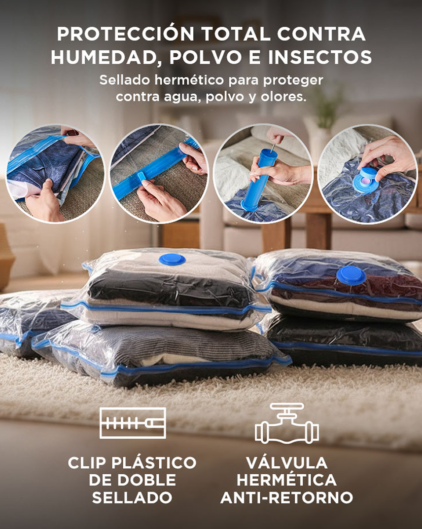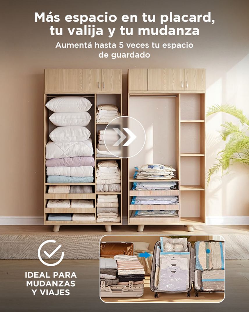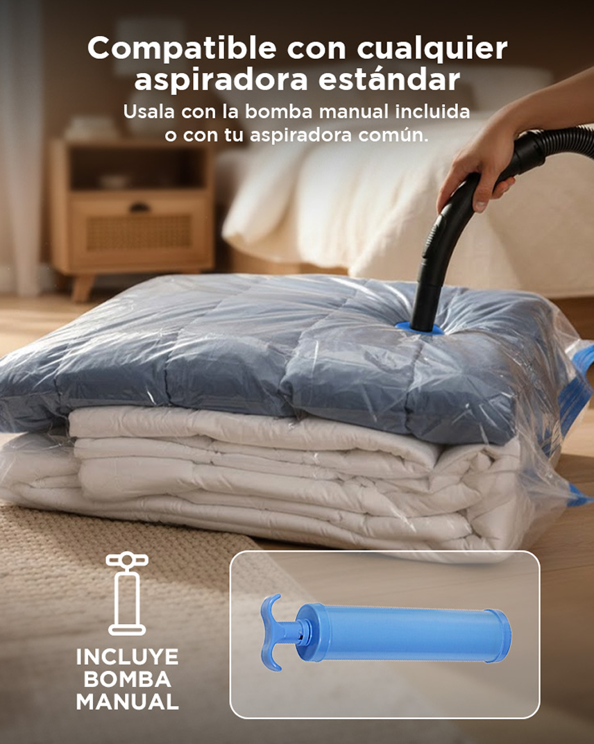 ¡Presentamos la solución de almacenamiento definitiva! El kit de bolsa de almacenamiento al vacío con bomba manual. Diseñado para revolucionar la forma de organizar y almacenar sus pertenencias, este kit ofrece comodidad incomparable y beneficios de ahorro de espacio.