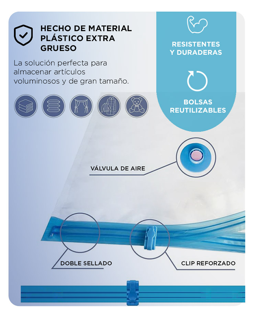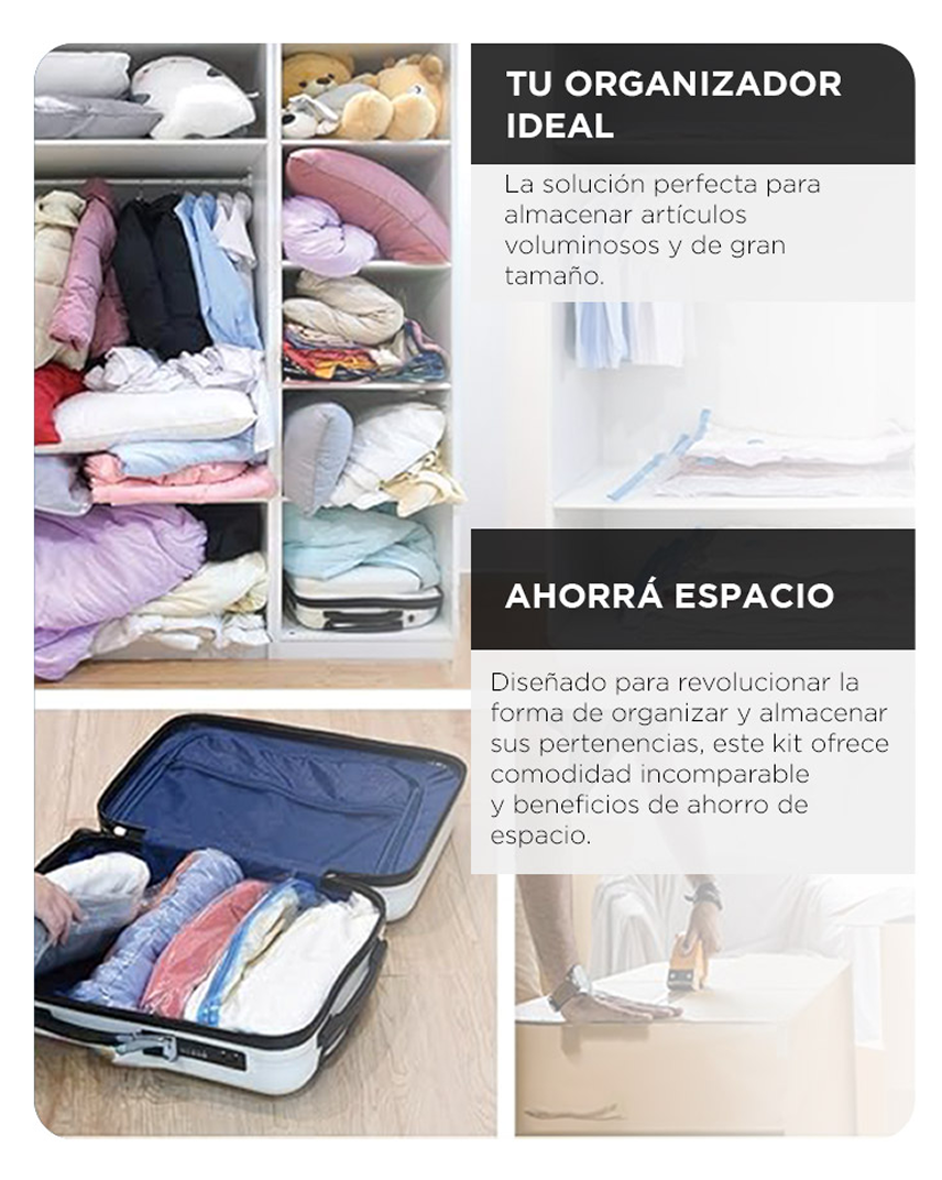 ¡Presentamos la solución de almacenamiento definitiva! El kit de bolsa de almacenamiento al vacío con bomba manual. Diseñado para revolucionar la forma de organizar y almacenar sus pertenencias, este kit ofrece comodidad incomparable y beneficios de ahorro de espacio.