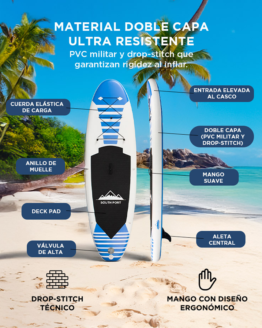 Disfruta la aventura sobre el agua: La Stand Up Paddle Gadnic Bertha Inflable ofrece una experiencia segura y divertida en playas lagos o rios. Su tamaño de 305 por 84 por 15 centimetros proporciona excelente estabilidad y comodidad para quienes se inician en el paddle o practican con frecuencia.